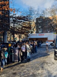 Jaarlijks trakteren wij onze leerlingen en personeelsleden op oliebollen, vers gebakken van de kraam op het schoolplein. De chauffeur had de sneeuw bedekte wegen getrotseerd en de wagen veilig op het schoolplein gekregen. Iedereen heeft gesmuld en zo kunnen we goed aan het nieuwe jaar beginnen!